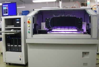 PET材に塗布したグリーンシートのピンホール及びPET材の凹凸を画像検査します。検出サイズ0.8μ(検出実績0.3μ)